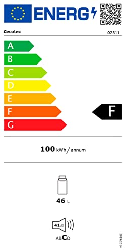 Cecotec GrandCooler 20000 SilentCompress – Mini Nevera 46 L con Compresor, Congelador, Puerta Reversible, 5 Niveles de Temperatura, 42 dB, Clase E – Negro