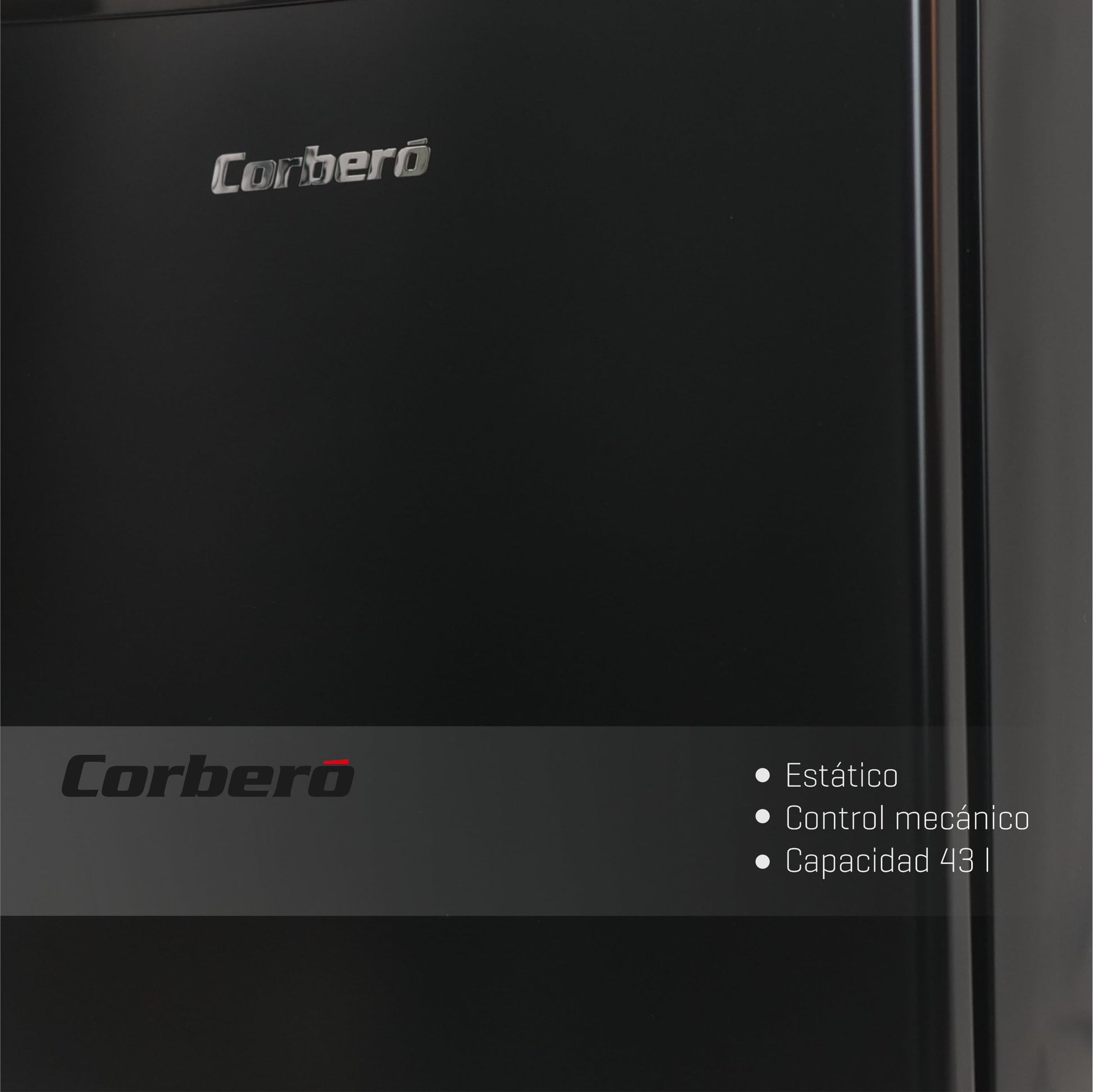 Corberó CFMMB44BL - Mini Bar 43L, Estático, Termostato 1-10 °C, Puerta Reversible, Bajo Consumo, Silencioso 41 dB, Clase E, Negro