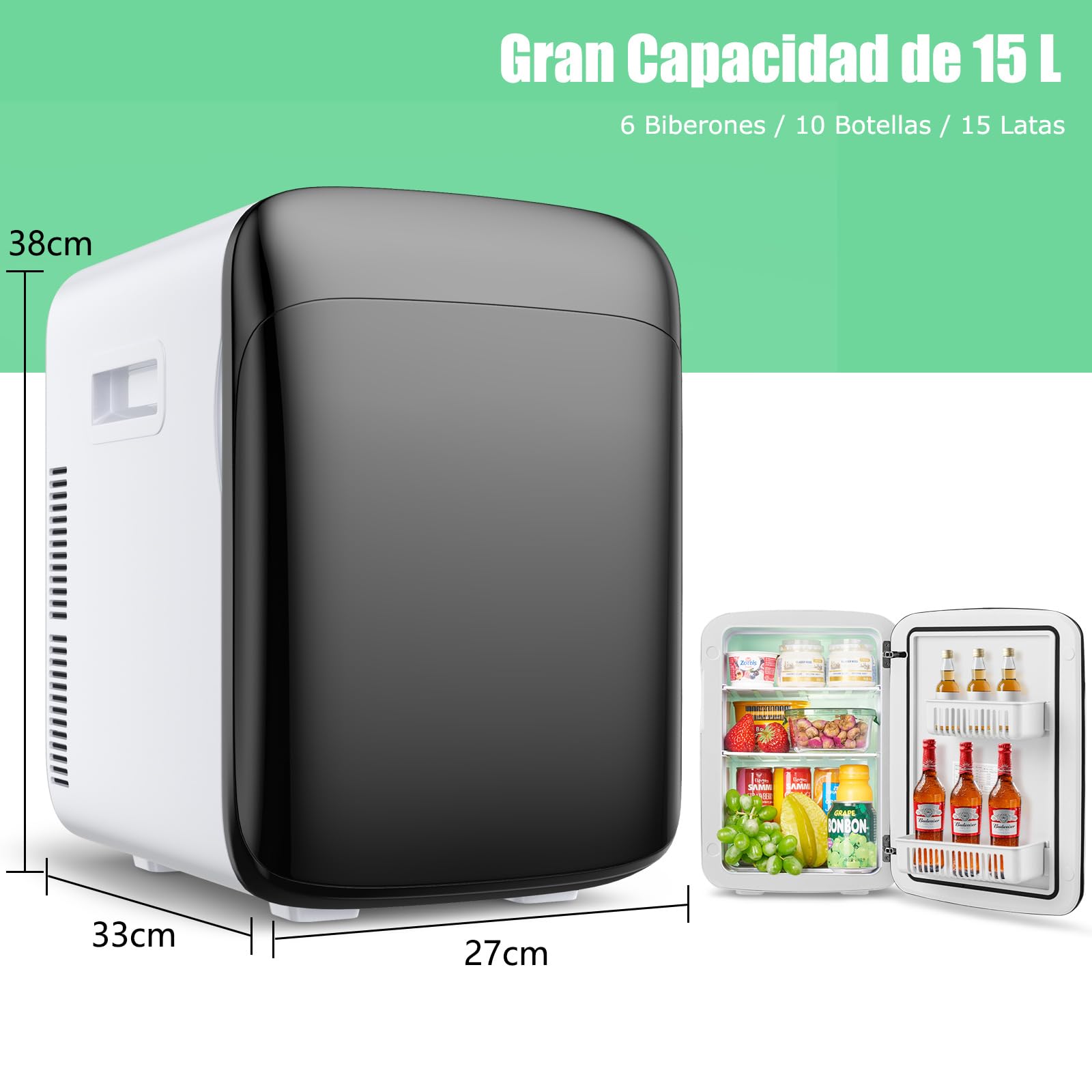 Disfruta de refrigeración y calefacción portátil en un formato compacto y elegante. La mini nevera GOPLUS de 15 L ofrece un amplio rango de temperatura (-3 °C a 50 °C), perfecta para mantener tus bebidas frías, cosméticos frescos o calentar alimentos. Ideal para el hogar, oficina, coche o viajes. Su diseño silencioso y digital la convierte en una solución práctica y versátil para tu día a día.