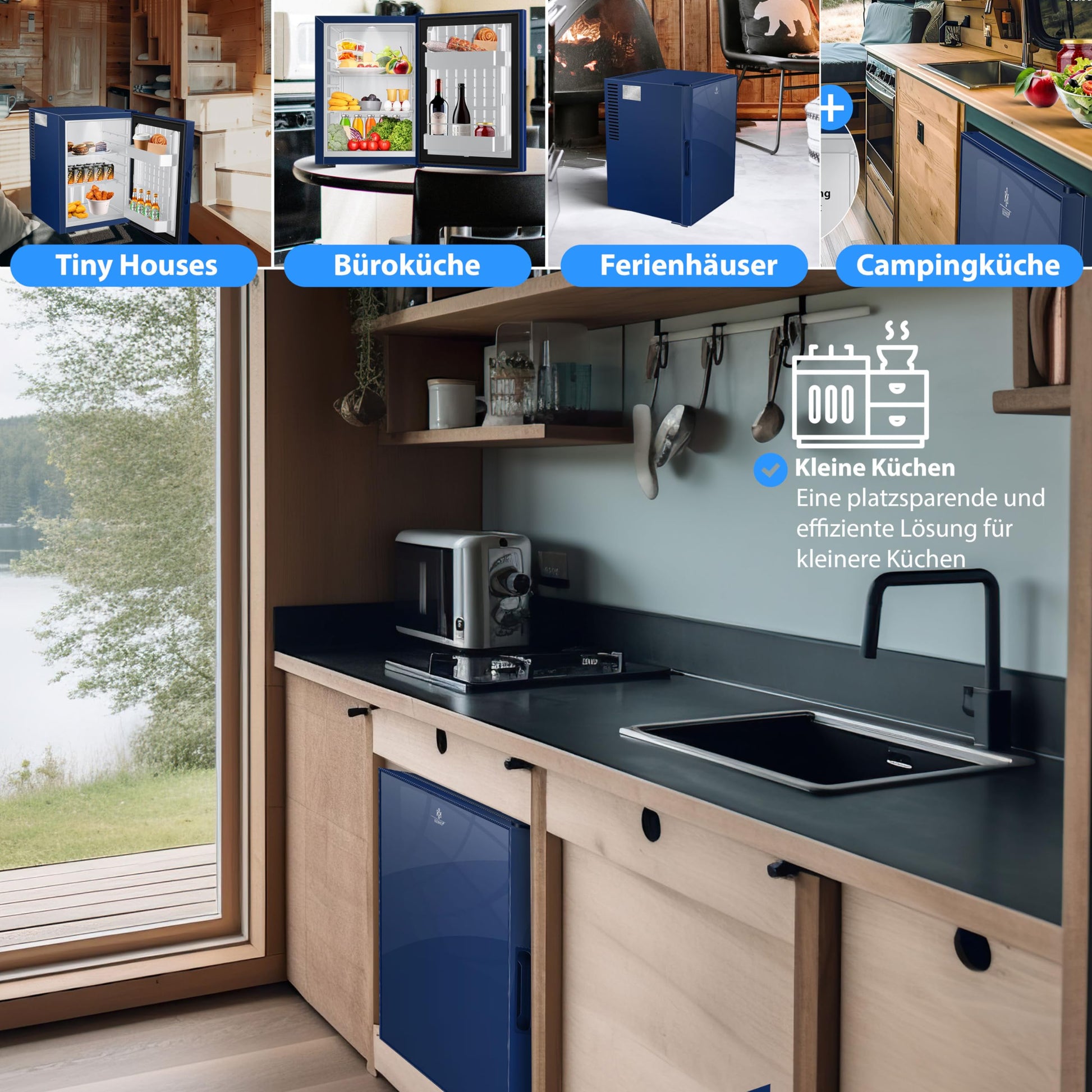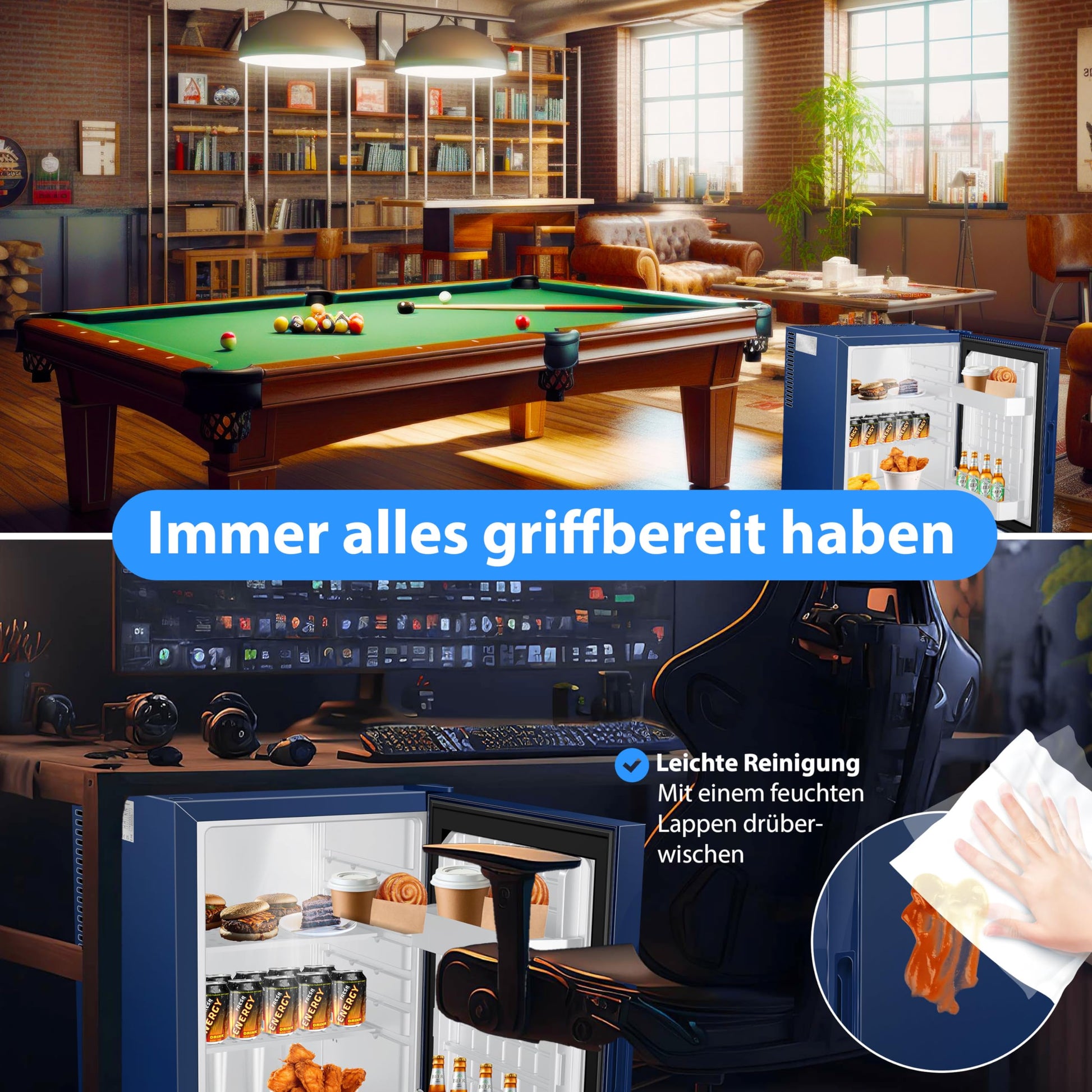 KESSER Mini Nevera 40L Azul Marino con Puerta de Cristal – Silenciosa, Eficiente y Versátil