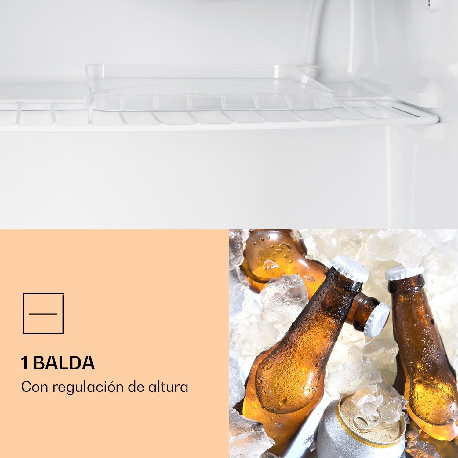 Klarstein Mini Bar de 46L combina funcionalidad silenciosa con un diseño elegante en color plata metalizado. Perfecta para habitaciones, oficinas, hoteles y espacios reducidos, esta mini nevera ofrece almacenamiento eficiente con congelador integrado, estante ajustable y compartimentos en la puerta.