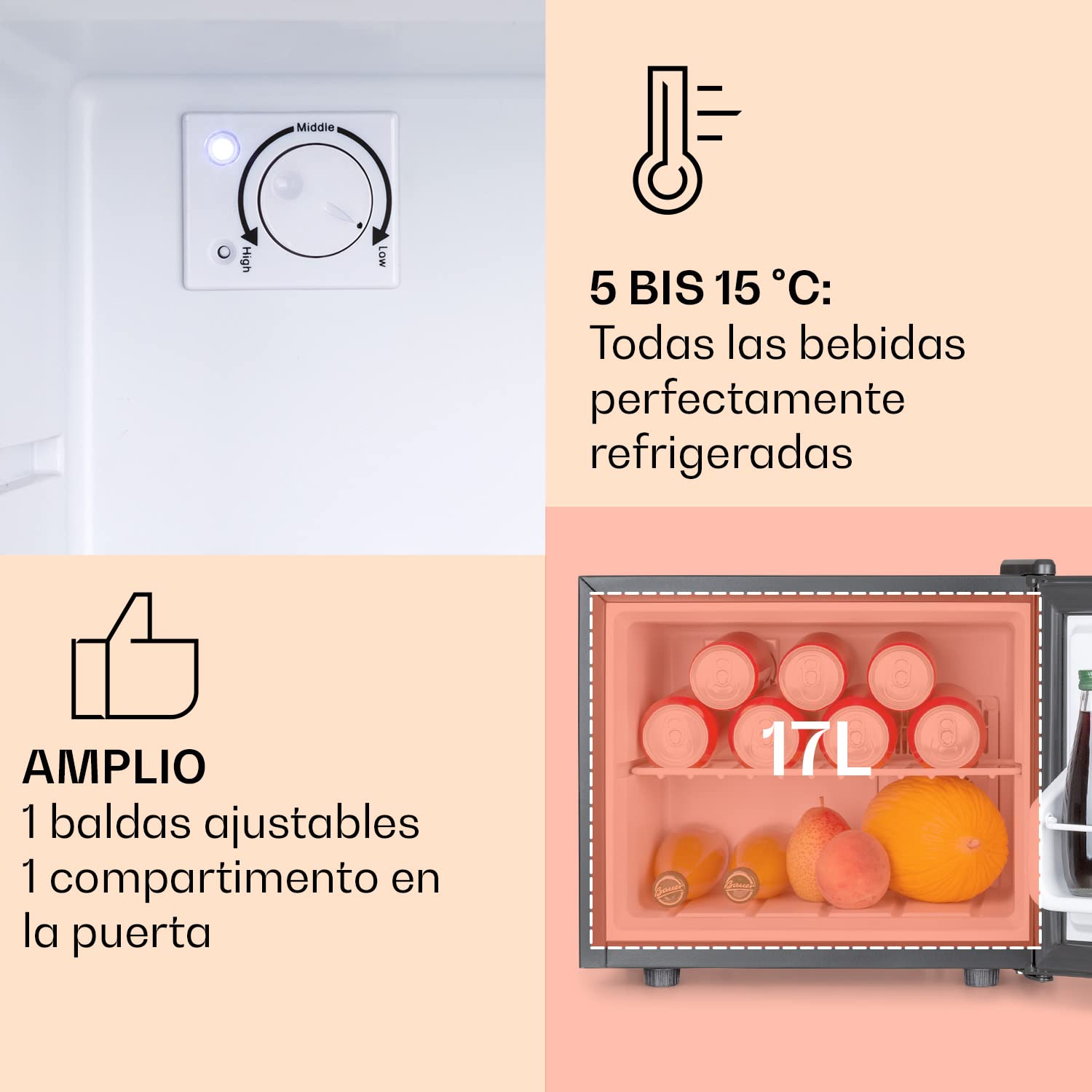 ● Temperatura regulable: Ajuste entre 0 y 15 °C según el contenido y tus preferencias.