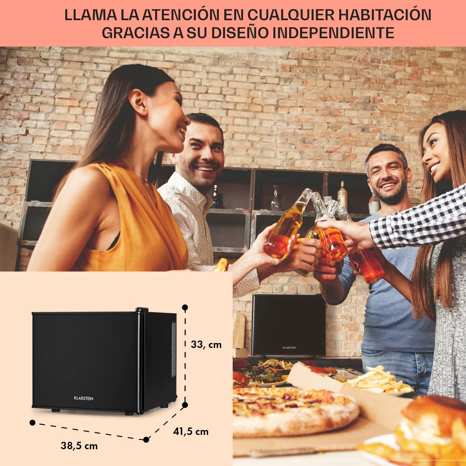 Disfruta de bebidas y alimentos frescos en cualquier lugar con la mini nevera portátil KLARSTEIN de 17 L. Gracias a su tamaño compacto, funcionamiento silencioso y temperatura ajustable entre 0 y 15 °C, es ideal para dormitorios, oficinas, caravanas o espacios personales. Su diseño elegante en color negro se adapta perfectamente a cualquier ambiente.