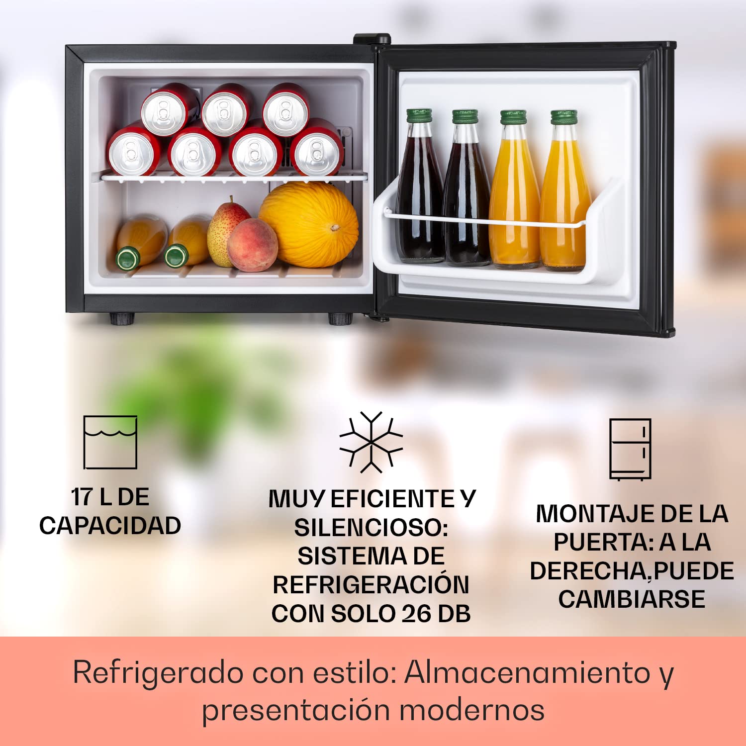 ● Capacidad de 17 L: Perfecta para refrescos, cervezas, snacks o productos cosméticos.
