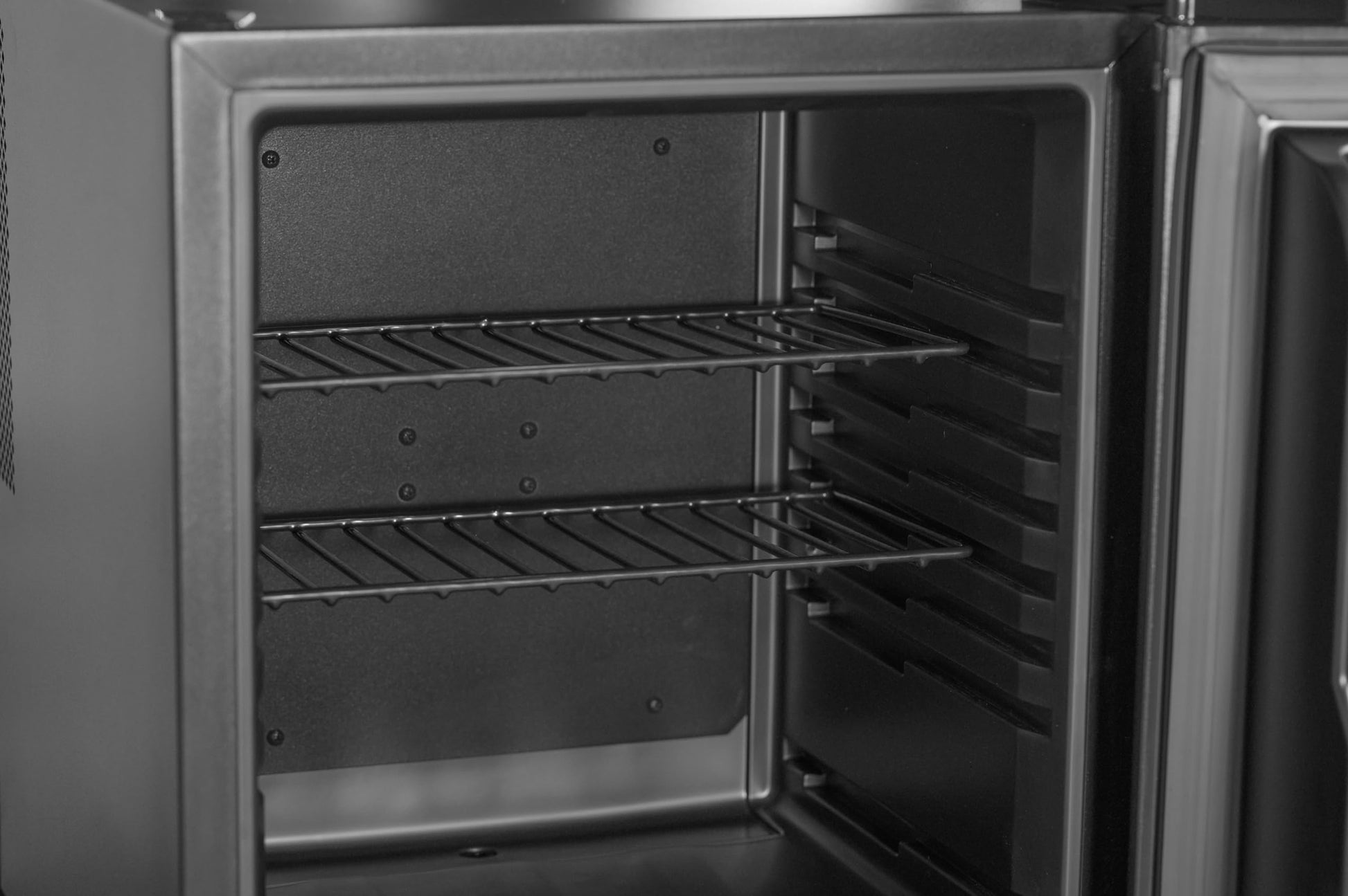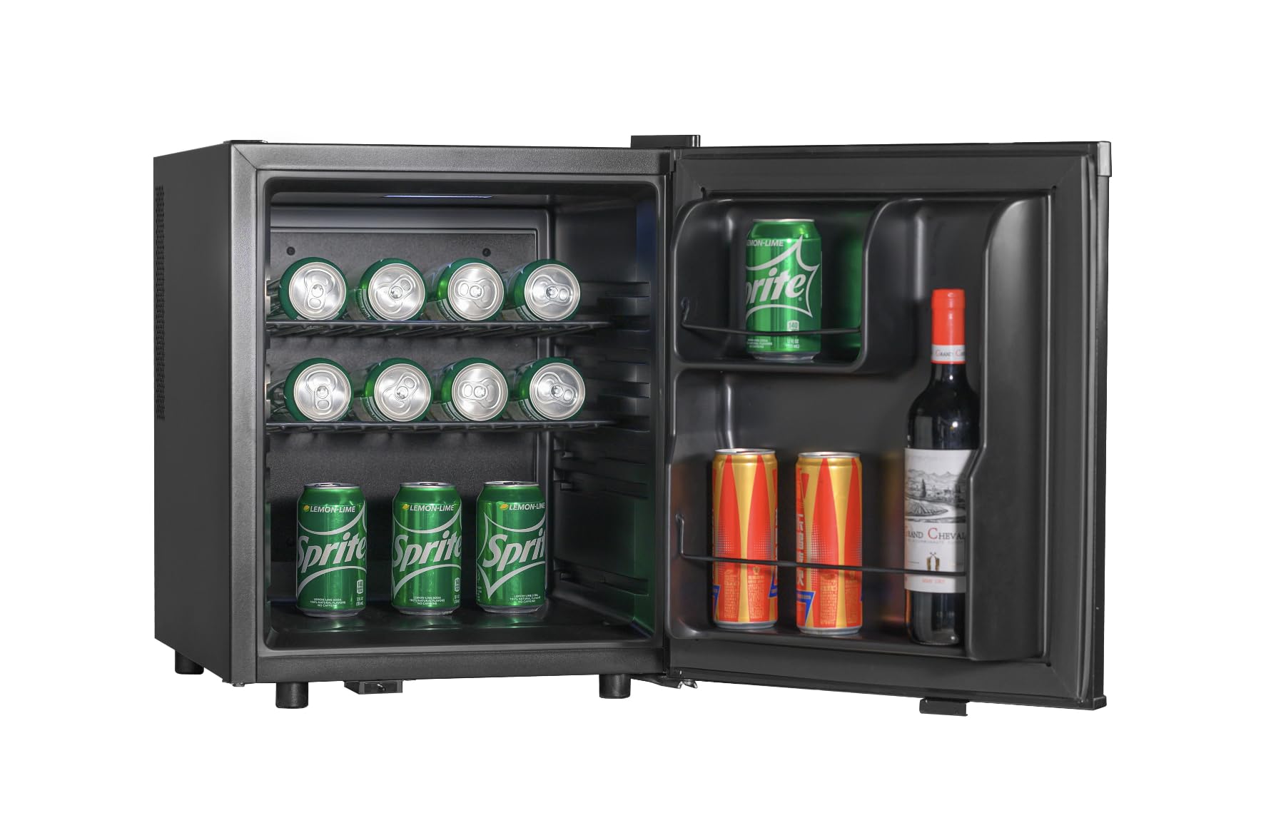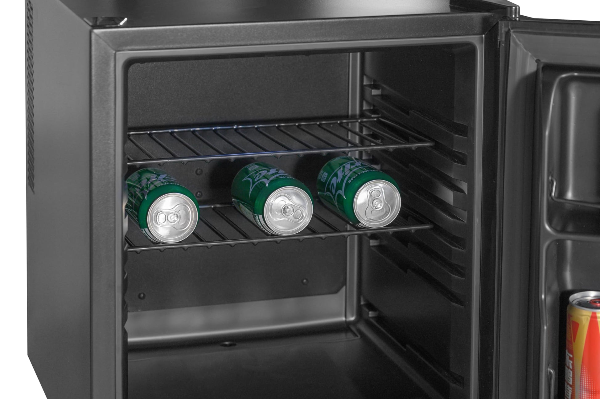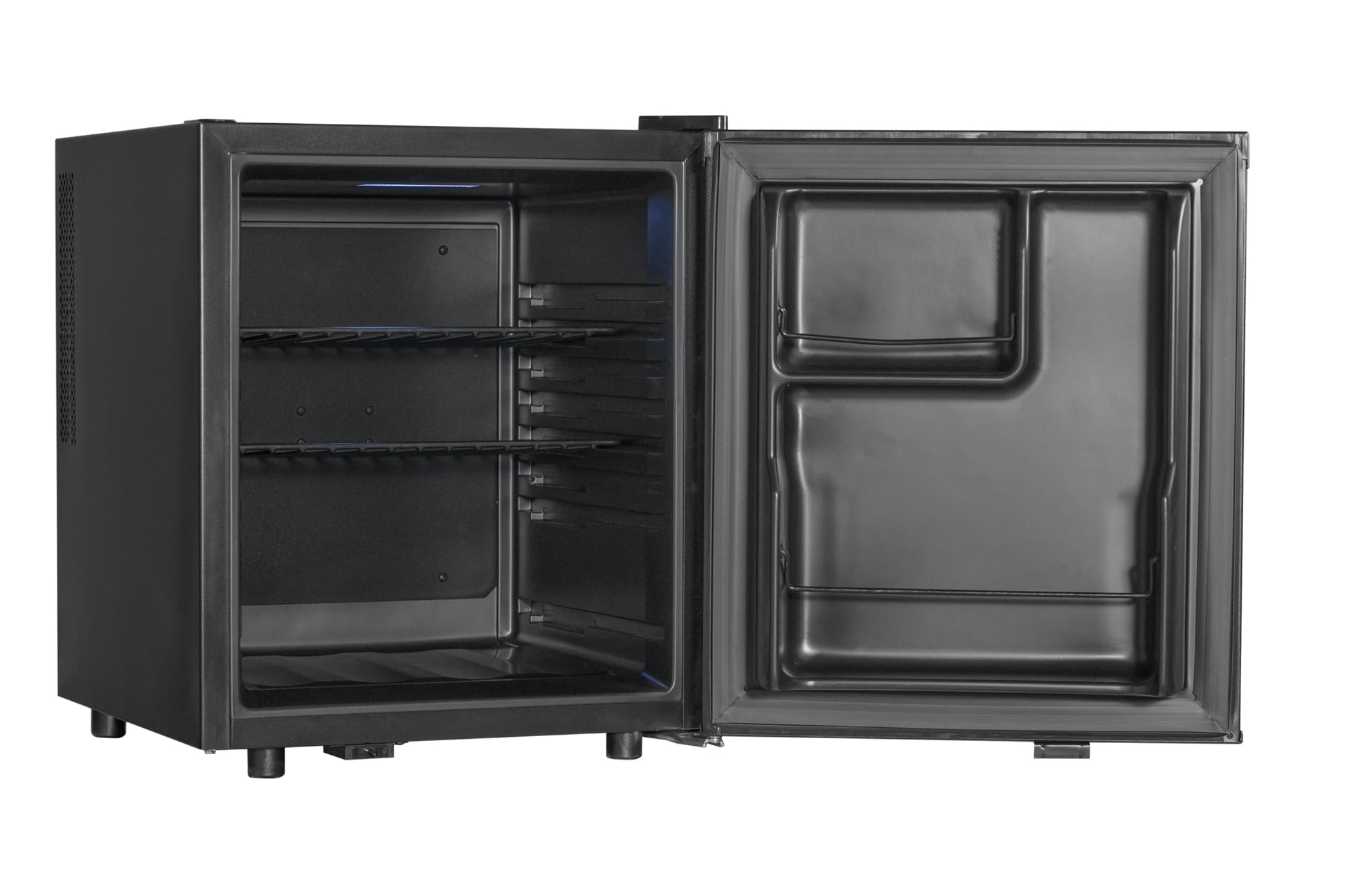 METRO Professional Minibar 45L – Frigorífico Compacto con 2 Estantes, Puerta Reversible, Bajo Consumo, Ideal para Oficina, Dormitorio u Hotel, 43x48x52.2 cm, Negro